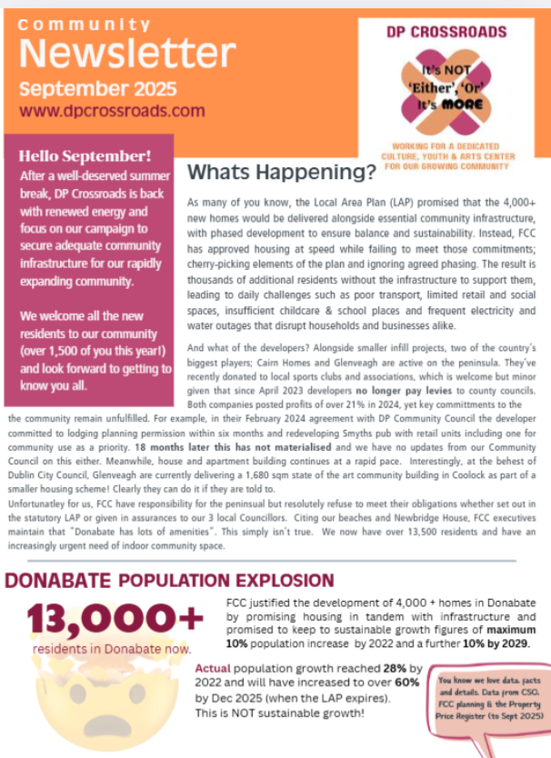 At its core, the LAP aims to ensure that any new development in Donabate is accompanied by the required community, educational, transport, drainage, and recreational infrastructure to ensure the protection and enhancement of local amenities and the continued growth of local services in Donabate.
